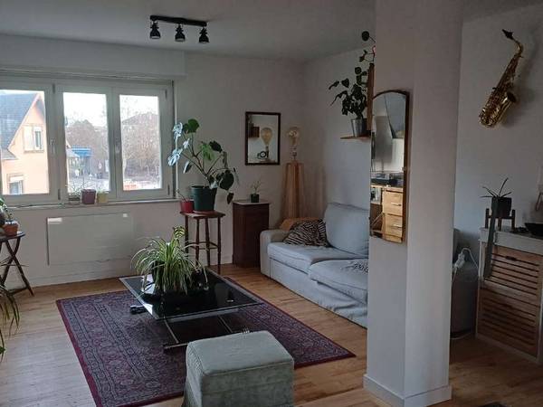 L'appartement fait 4-5 pièces : salon/salle à manger, bureau, ma chambre, et la chambre proposée. Bus à 20 mètres, Tram arrêt Elmerforst à 7min à pied. Pour les bike lovers (mon cas), on atteint le centre en 15min via la piste cyclable super jolie de la bruche, perso j'y suis en 10-12 min mais je pédale vite! L'appartement bénéficie d'une super luminosité car traversant. D'un côté on a la route de schirmeck, passante, bruyante, mais également la place d'Ostwald, qui va être refaite en lieu de vie. De l'autre côté, un quartier résidentiel tout calme. La chambre proposée est du côté calme, donc pas de bruits de voitures ou de traffic ! Le quartier est franchement serein, familial et populaire. On y vit vraiment bien. La salle de bains et les toilettes ont été refaites il y a un an. J'ai un bureau / salle de musique qui peut être partagé sans problème.