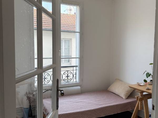 Nous avons 30 ans et 35 ans, nous sommes un couple de 2 femmes. Nous recherchons quelqu’un pour intégrer la petite chambre de l’appartement. (La chambre en question est celle où il y a le bureau, et le petit lit 80x185), notre chambre à nous n’est pas sur les photos.