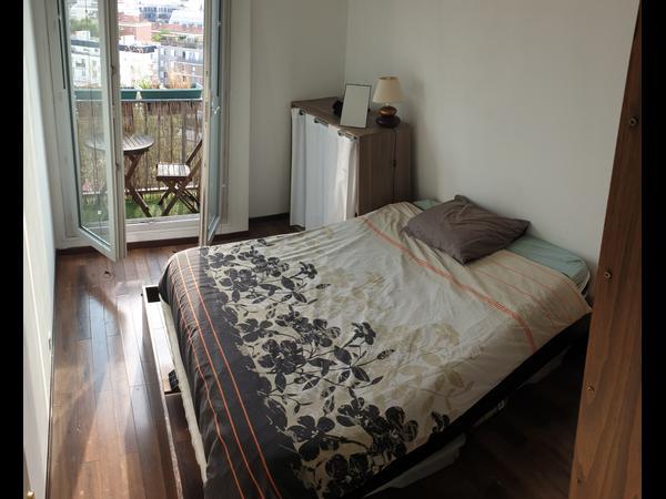 L'appartement de 75m² dispose d'une chambre privative avec balcon, très lumineuse et avec une jolie vue dégagée sur les hauteurs de Paris.