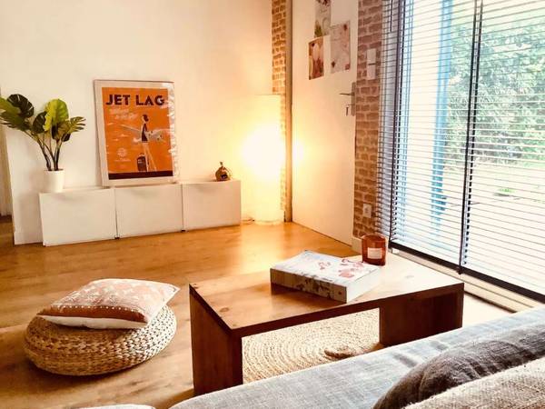 Le lieu de vie est sympa : jardin, terrasse, parking, tout de plain pied avec une grande baie vitrée sur jardin.