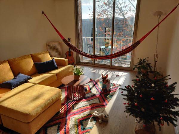 On vit entre les arrêts de tram Rives du Lez et Voltaire. L’appart fait 68m, deux balcons. J’ai installé un hamac dans le salon 🌿, parfait pour lire ou faire la sieste. L'appart est très lumineux, vraiment sympa à vivre. Il est très bien situé, proche des lignes 1, 3 et 4, à 15 min à pied du centre, et tout près du Lez pour les balades 🌞 Il y a aussi accès à un parking ouvert dans la résidence si tu as une voiture . Tu pourrais occuper une chambre meublée de 12m.
