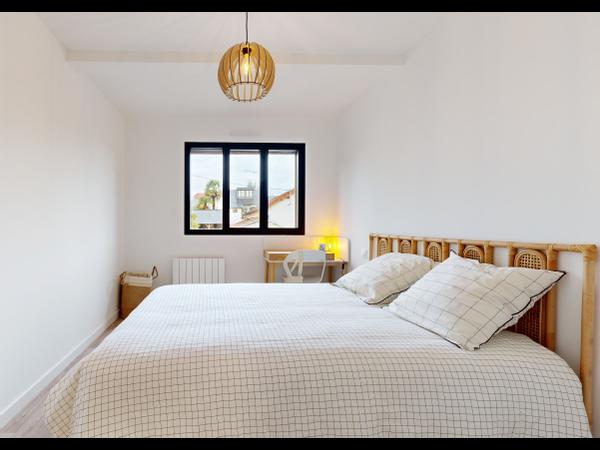 5 chambres privées, entièrement meublées avec lits doubles, bureaux, et dressings, avec sa propre salle de bain privative (douche, WC, meuble vasque). Des espaces communs pensés pour le partage et la convivialité :