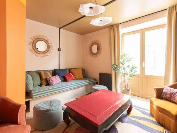 Let's dive into the cozy spaces of this delightful 9-room home ideally situated in the enchanting neighborhood of Butte Aux Cailles in Paris. In addition to stunning shared spaces and a magnificent kitchen, Butte Aux Cailles 26 has an onsite gym and a fantastic cinema room, perfect for movie nights with new friends.