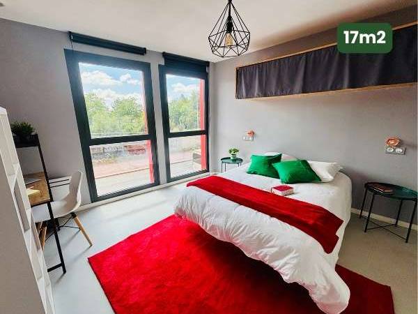 Disponible au 1er/01, c'est une grande chambre très lumineuse avec salle de douche attenante.