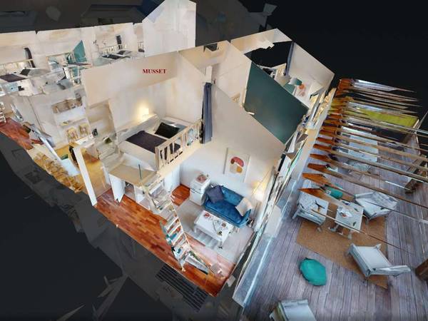 Duplex calme et ensoleillé avec baie vitrée coulissante sur terrasse, accès jardin. Rochelle en coin nuit. SdE et WC privés, au 1ᵉʳ étage.