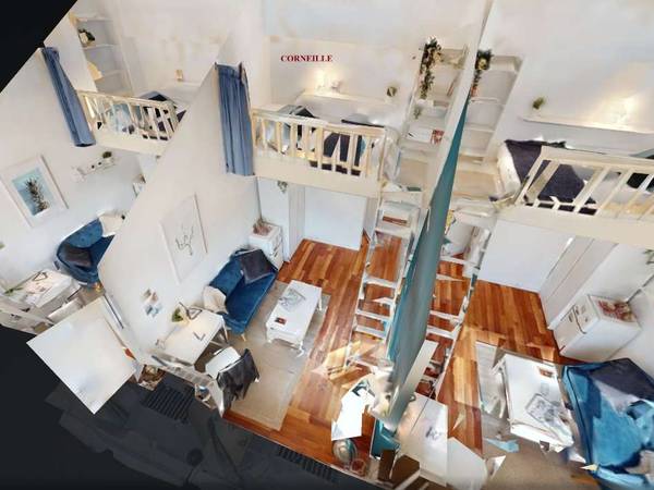 CORNEILLE : duplex calme et ensoleillé avec baie vitrée. Rochelle en coin nuit. SdE et WC privés, au 1ᵉʳ étage.