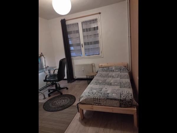 Je vous propose de louer une chambre meublée de 10 m² dans un appartement à partager avec 2 autres chambres dont une autre qui est aussi à louer et une occupée par mon fils 40 ans et l'autre aussi à louer.