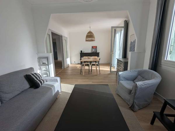 Bel appartement de 120 m² situé au 1er étage d’une maison, dans une impasse calme. Entièrement meublé et équipé. ▸Une cuisine indépendante avec lave-vaisselle et lave-linge ▸Une salle d’eau moderne ▸Des WC séparés ▸Un balcon agréable