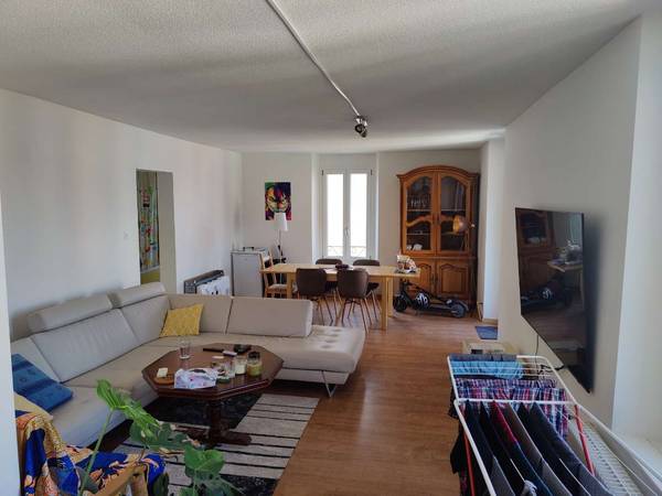 Appartement : Appartement de 120 m², 5.5 pièces : salon, cuisine équipée, 3 chambres, 1 salle de bain, 1 salle de douche, grande cave.