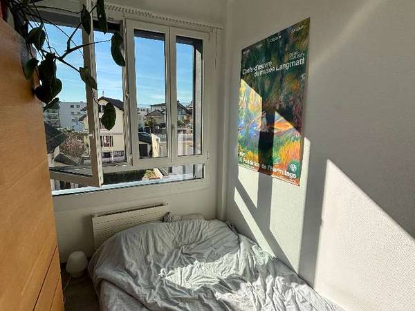 Hey! I'm subletting my room for 2 months (May and June). The apartment is brand new with spacious, light-filled common areas, and the room itself is also bright with a double bed and a desk. It's a 3-person flatshare with two really friendly flatmates (both guys, 23, students at EPFL). The apartment is well located: 10 min walk from Renens train station (trains to Lausanne, M1 metro toward EPFL) and 10 min by bike to the EPFL campus. Don't hesitate to reach out if you have any questions! Dates are also slightly flexible if needed.