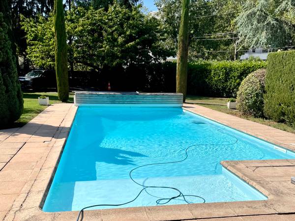Un lieu XXL, 1500 m² en tout: une maison principale, un grand parc arboré, un chalet fitness, une piscine avec sa maison d’été, une remise et des places de parking.