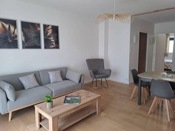 L'appartement a été refait récemment et est meublé avec du mobilier neuf de qualité. Il est composé d’un hall d’entrée donnant sur un grand salon convivial ouvrant sur un large balcon côté Sud, une cuisine séparée toute équipée avec sa loggia. Il comprend trois chambres accueillantes et confortable (lit double de qualité),une salle d'eau spacieuse avec douche et WC suspendu, un W.C séparé avec son meuble lave mains. Côté salon, un canapé 3 personnes et un fauteuil à bascule vous attendent ainsi qu'une SMART TV. Côté cuisine, vous avez tout pour cuisiner (vaisselle en quantité, four, micro ondes, lave vaisselle etc.) ainsi qu'une cafetière Nespresso, une bouilloire et un grand réfrigérateur congélateur neufs. Egalement dans la cuisine un lave linge grande capacité. Lors des beaux jours, vous pourrez prendre votre café ou repas sur la terrasse équipée d'une table et de 3 chaises.