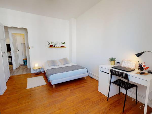 Superbe colocation rue Mallifaud à Grenoble 🏠LE LOGEMENT Coup de cœur pour cette colocation de 66 m² entièrement meublée et rénovée idéalement située au 4e étage d'un immeuble au 89 rue Mallifaud. Un parquet flottant a été posé dans tout l’appartement, les chambres y compris. 🛏️LA CHAMBRE Superficie : 12 m2 Mobilier: un lit double, une table de nuit avec lampe de chevet, un bureau, un grand placard avec portes coulissantes contenant un espace penderie et une étagère décorative pour personnaliser le tout! + Il est à noter que la literie est fournie. 🛋️ESPACES COMMUNS Grande cuisine aménagée et équipée ouverte sur un grand salon/salle à manger Coin buanderie Balcon Salles de bain toilettes 🏙️ CADRE DE VIE Au quotidien, profitez de nombreux commerces de proximité (supermarché, pharmacie, boulangerie, etc.) TRANSPORTS 🚊Tram ligne C (arrêt Gustave Rive) 💡SERVICES ET ÉQUIPEMENTS INCLUSInternet (Fibre) Chauffage Gaz Eau chaude Electricité Taxe ordures ménagères Lave-linge. Lave-vaisselle