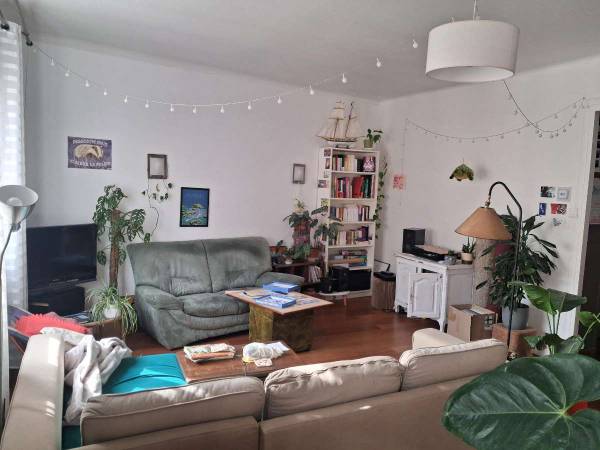 C’est un appart d’environ 90m2, au 4ème étage avec ascenseur, cave à vélo, avec trois chambres, 2 petits balcons (un ouest et un à l’est on peut suivre le soleil hihi, on voit un bout de Belledonne et très bien le Vercors), une grande pièce salon-cuisine, le loyer est de 410€ par personnes en bail solidaire, sans agence, (caution = un mois de loyer) chauffage au gaz individuel, pas de conflits avec les voisin.es (c’est presque le plus important ahah). La première chambre qui si libère n'est pas meublée sauf le lit et le matelas et la deuxième je ne sais pas encore si le lit reste mais elle est équipée d'un IMMENSE placard.