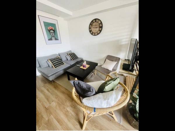 Grand séjour + salle à manger Cuisine équipée ouverte sur séjour Très ensoleillé- Balcon plein sud, au 4e étage avec ascenseur Résidence très bien entretenue, avec gardien 📺 TV + Netflix 🔹 Eau chaude + froide, électricité, chauffage 📶 Internet haut débit Fibre