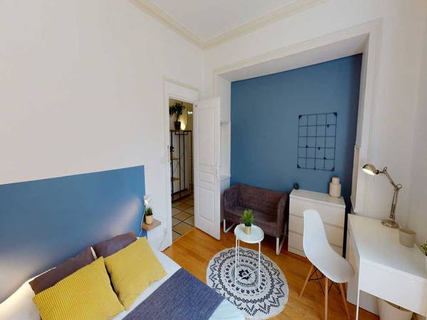 Colocation meublée ! -------------------------------- Tous nos appartements sont situés en centre-ville et proches de toutes commodités et transports en commun (Métro, Tramway et Bus). --------- Chambre individuelle dans un appartement partagé, composé de 8 chambres et 2 salles de bain. D'une superficie d'environ 14 avec un lit double et un poste de travail.. Avec wifi, lave-vaisselle, machine à laver. Classe d'énergie : F, IPE 0,00 Kwh/Sqm année. Toutes nos chambres sont entièrement meublées (lit, bureau, penderie, couette, oreillers…). --------- Tous nos appartements sont entièrement équipés (lave-linge, vaisselle, décoration…) par nos équipes, qui assurent également la maintenance technique et matérielle. --------- Durée minimum de séjour : 1 mois Appartement éligible à la CAF jusqu'à 258€ / mois. La CAF (Caisse d'allocations familiales) est un service public gratuit pouvant vous aider financièrement à payer une partie de votre logement selon votre situation. Pour connaître le montant potentiel de votre aide, rendez-vous sur le site de la CAF et complétez l'estimation en ligne des APL (aide au logement). Frais de services : à partir de 590€ Les frais de services couvrent l'écriture du bail ainsi que l'assistance tout au long de votre séjour, incluant la réparation, l'entretien du matériel et l'accès à notre support en cas de besoin. Caution : 900€ --------- Nous accueillons principalement des étudiants et des jeunes actifs de 18 à 35 ans. Notre objectif est de faciliter l'accès à un logement meublé et parfaitement équipé, tout en favorisant une expérience de colocation conviviale et enrichissante.