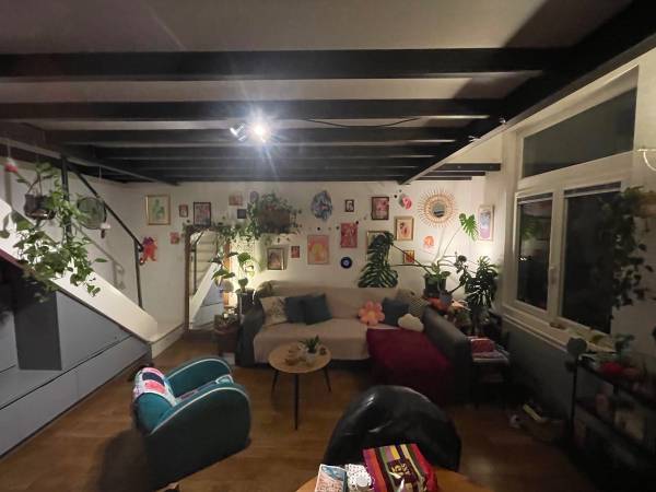 Aussi, qui n'a pas le sommeil trop leger, les murs sont fins et les portes/sols grincent Appart relativement petit, deux étages. Au premier inter étage d'un immeuble à saxe gambetta. Donne sur cour intérieure avec petite passerelle, si tu as la main verte tu pourras y planter des trucs! Très calme, on entend un peu le vent dans les arbres et les oiseaux chanter comme si on était pas en pleine ville. Mega accessible niveau transports et quartier très cool. Il y a des marches et pas d'ascenseur