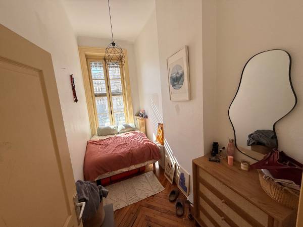 Concernant l’appart : - 5 place des Cordeliers, Lyon 2 - Exposition sud, bonne luminosité - Environ 60m2 - Non meublé mais la majorité des meubles des espaces communs resteront - Chambre qui se libère : cf. Photo de l’annonce (assez étroite mais grand placard mural à l’entrée, convient pour un lit 140 à 160 grand max) - Loyer : 590€ toutes charges comprises (eau/électricité/gaz/internet), avec régularisations annuelles à prévoir selon notre conso - Caution : 518€ (loyer non chargé) - Autres frais à prévoir : Frais d’agence Foncia : ~300€ + Rachat de la part de Noémie pour les meubles communs : ~200€/300€
