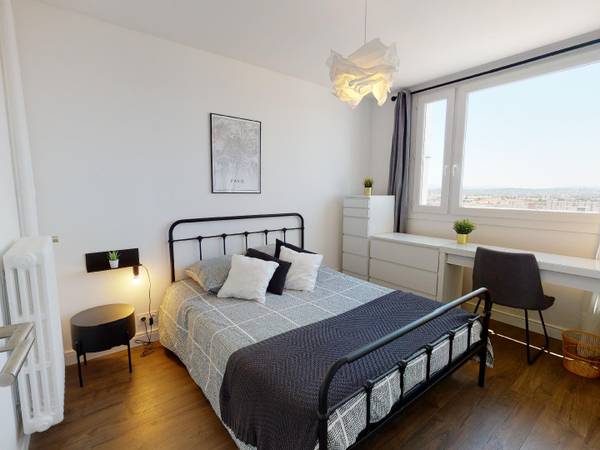 🏡LE LOGEMENT Superbe opportunité avec cette colocation à Lyon: 80 m² pour 4 chambres, un aménagement haut de gamme et un spot bien desservi à côté du T4 et T6. L’appartement, entièrement meublé, se trouve au 12e étage de la résidence 167 boulevard des Etats Unis calme et sécurisée 🛏️LA CHAMBRE Superficie : 10 m2 La chambre 2 est située dans la partie nuit. A l’instar de l’appartement, elle est bien meublée et décorée avec soin. Elle dispose d’un lit double, d’un beau bureau, d’une commode, d’une colonne de rangement, d’une table de nuit avec lampe de chevet et d’un miroir suspendu. Grâce à sa grande fenêtre, elle est lumineuse et offre une vue magnifique et dégagée. 🛋️ESPACES COMMUNS Cuisine ouverte et entièrement équipée Salon 2 salles de bain WC séparés 🌆CADRE DE VIE Au quotidien, profitez d’un quartier très résidentiel, proche de toutes commodités (pharmacie, restaurants, commerces, supermarchés, la poste). TRANSPORTS 🚉Le T4 (arrêt Viviani),T6 (arrêt Beauvisage CISL) 🚌 Nombreuses lignes de bus 💡SERVICES ET ÉQUIPEMENTS INCLUS Internet Chauffage Eau courante Eau chaude Electricité Gaz Entretien de la chaudière Entretien de l’immeuble Taxe ordures ménagères ----------------- Bail individuel à la chambre. Pas de caution solidaire. Chacun est libre de partir quand il veut sans se soucier des autres colocs, dès le moment où il respecte un mois de préavis. Eligible aux APL.