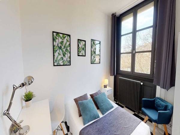 65.00€ de réduction pour le premier mois Colocation meublée ! -------------------------------- Tous nos appartements sont situés en centre-ville et proches de toutes commodités et transports en commun (Métro, Tramway et Bus). --------- Au cœur du dynamique quartier Hôtel de Ville - Presqu'île , cette chambre lumineuse constitue un pied‑à‑terre pratique pour profiter de Lyon. Chambre double de 11 m² située dans un appartement de 110 m² comprenant 1 salle de bain, 4 couchages et 4 pièces. Les atouts incluent le WiFi , le chauffage et des appareils ménagers comme le lave‑vaisselle et la machine à laver . La disposition de l'appartement permet une vie en colocation confortable tout en gardant votre espace nuit privé. Située au cinquième étage, la chambre bénéficie d'une belle vue sur le quartier. Parfait pour étudiants ou jeunes actifs à la recherche d'une chambre bien équipée au centre de Lyon, proche des transports et commodités. Les places partent vite! Toutes nos chambres sont entièrement meublées (lit, bureau, penderie, couette, oreillers…). --------- Tous nos appartements sont entièrement équipés (lave-linge, vaisselle, décoration…) par nos équipes, qui assurent également la maintenance technique et matérielle. --------- Durée minimum de séjour : 1 mois Appartement éligible à la CAF jusqu'à 258€ / mois. La CAF (Caisse d'allocations familiales) est un service public gratuit pouvant vous aider financièrement à payer une partie de votre logement selon votre situation. Pour connaître le montant potentiel de votre aide, rendez-vous sur le site de la CAF et complétez l'estimation en ligne des APL (aide au logement). Frais de services : à partir de 490€ Les frais de services couvrent l'écriture du bail ainsi que l'assistance tout au long de votre séjour, incluant la réparation, l'entretien du matériel et l'accès à notre support en cas de besoin. Caution : 900€ --------- Nous accueillons principalement des étudiants et des jeunes actifs de 18 à 35 ans. Notre objectif est de faciliter l'accès à un logement meublé et parfaitement équipé, tout en favorisant une expérience de colocation conviviale et enrichissante.