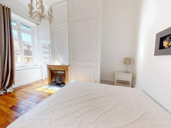 Oqoro vous présente cette colocation de charme . Un appartement de 75 m² composé de 3 chambres, situé au 117 Rue Marietton, Lyon 9.🏠 LES ESPACES COMMUNSLa pièce de vie, lumineuse, est aménagée avec un canapé, une table basse, une banquette et une ancienne cheminée décorative. La cuisine ouverte est entièrement équipée : four, micro-ondes, plaques de cuisson, hotte, évier, réfrigérateur avec compartiment congélateur, machine à café, bouilloire, lave-vaisselle, lave-linge, ainsi que de nombreux rangements et ustensiles de cuisine. La salle d’eau dispose d’une douche, d’une baignoire et d’un meuble vasque double avec miroir. Les WC sont séparés pour plus de confort. La chambre, adjacente au salon, lumineuse et décorée avec goût avec sa cheminée, offre un espace chaleureux et accueillant. Elle est équipée d’un lit double et de rangements.