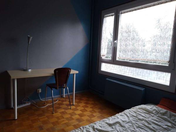 Concrètement, la chambre dispose d'un bureau, d'un lit double, ainsi que d'une armoire de rangement (dressing). Il y a également une jolie vue de Lyon et l'endroit est calme et paisible.