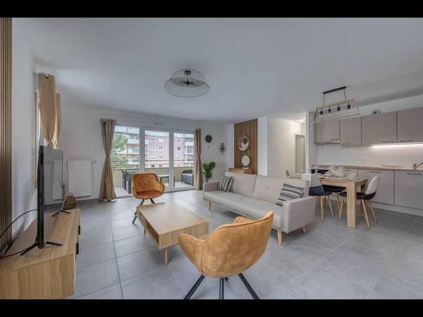 Colocation Haut de Gamme de 85m2 (+balcon de 10m2) dans une résidence neuve tout confort (machine à laver/sèche-linge, lave-vaisselle, service de ménage plusieurs fois par mois, TV 4K, fibre optique, …).