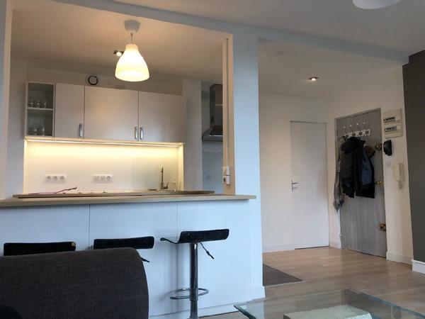 Equipement complet : La cuisine comprend : Bar + 3 chaises, plaque induction, four, lave-vaisselle, micro-onde, frigo, cafetière, bouilloire, lave-linge, aspirateur, .
