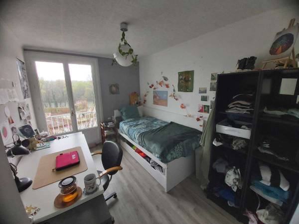 La chambre disponible est côté ouest, et possède une vue sur les berges et la bastille. Elle a un grand bureau, et un lit avec un espace de rangement en dessous ! La chambre est à 350€+45€ de frais toutes charges comprises donc 395€ au total. Nous cherchons une personne qui pourra libérer la chambre fin août max.