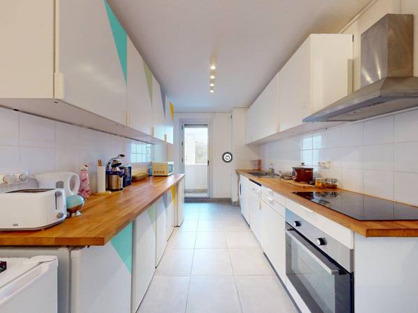 🏠 LE LOGEMENT L’appartement s’organise autour d’une cuisine séparée, spacieuse et entièrement équipée. Elle dispose de nombreux rangements, d’une plaque de cuisson, d’un four, d’un micro-ondes, d’un lave-vaisselle, d’un lave-linge et d’un réfrigérateur. Chaque locataire bénéficie également de son propre réfrigérateur et d’un placard attribué par code couleur, permettant à chacun de disposer de son espace dédié. Un coin repas lumineux, attenant à la cuisine, offre un espace convivial pour partager les repas. La salle d’eau est équipée d’une douche, d’un meuble vasque et d’un sèche-serviettes. Les WC sont séparés (à conserver dans la description uniquement si confirmé par la visite virtuelle). Les espaces communs sont complétés par un balcon, accessible depuis la cuisine, apportant une belle luminosité et une ouverture agréable sur l’extérieur.