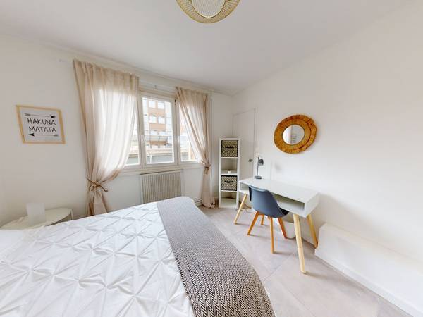 📷 VISITE VIRTUELLE DISPONIBLE 📷 🏠LE LOGEMENT OQORO vous présente cette belle colocation meublée de 84m² pour 4 chambres située à Vénissieux, au 9 Rue Pierre Brossolette. 🛏️LA CHAMBRE Surface : 9m² La chambre 1 est à gauche de l'entrée, elle est meublée d'un lit double d'une grande penderie, d'une commode et d'un bureau avec chaise. La chambre est très lumineuse et a été redécorée avec goût et modernité. 🛋️ESPACES COMMUNS Cuisine équipée avec 2 plans de travail séparés pour plus de confort Belle pièce de vie avec salon aménagé et meublé (avec canapé, table basse et TV) Loggia Deux salles de bains carrelées (une avec douche italienne, meuble vasque, et sèche-serviette / une avec douche et meuble vasque) WC séparés Le + de cet appartement : une loggia permettant de profiter de la lumière extérieure tout en restant à l'abri ! 🏙️CADRE DE VIE Ce logement est idéalement situé à proximité de plusieurs gymnases, terrains de tennis et stades permettant d’entretenir une activité physique sans les soucis du trajet. Situé dans une zone bien desservie par les transports en communs, il permet notamment de rejoindre en 30 minutes Bellecour ou encore la gare Part-Dieu. TRANSPORTS 🚊Tram T4 et T6 (arrêts États-Unis Tony Garnier et Petite Guille) 🚌Plusieurs lignes de bus circulent à proximité dont 2 bénéficiants du service renforcé (C12/ C16) 🚴🏻♂️ Stations Vélo’v 💡SERVICES ET ÉQUIPEMENTS INCLUS Chauffage Eau chaude Eau courante Entretien de la chaudière Entretien de l'immeuble Internet Fibre Taxe Ordures Ménagères Machine à laver ———————————————————————— Bail individuel à la chambre. Pas de caution solidaire. Chacun est libre de partir quand il veut sans se soucier des autres colocs, dès le moment où il respecte un mois de préavis. Eligible aux APL. GARANTIE VISALE OU GARANTME OBLIGATOIRE.