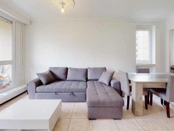🏠 LES ESPACES COMMUNS Le logement dispose d’une entrée, de deux salles de bain, d’une cuisine, d’un grand salon, d’un WC indépendant, ainsi que de quatre chambres. La cuisine est bien équipée, munie de son four, d’un micro-ondes, de plaques de cuisson, d’un grand frigidaire, d’un lave-vaisselle, d'un lave-linge, ainsi que de nombreux rangements. Le salon dispose d’une grande et belle table à manger accompagné de quatre chaises, d’un grand canapé, d’un meuble TV, d’un TV, et d’une table basse. Une première salle de bain dispose d’un meuble vasque et d’une douche, et une seconde salle de bain se munie d’un meuble vasque, d’une baignoire, ainsi que d’un meuble de rangement. Les chambres sont similaires, et disposent tout comme le salon d’un accès à une loggia. À. noter qu'un parking est disponible en supplément.