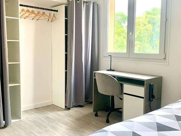 - 3 belles chambres privatives avec lit double rangements, Dressing bureau avec sa lampe et sa chaise.