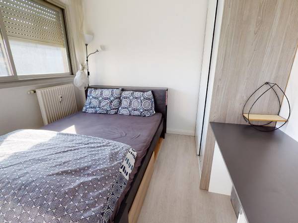 📷 VISITE VIRTUELLE DISPONIBLE 📷 🏠LE LOGEMENT OQORO vous présente cette superbe colocation meublée de 92 m2 pour 4 chambres, située au 9 avenue champs perdrix à Dijon. 🛏️LA CHAMBRE Surface : 11m2 Équipements : un lit double, un bureau et des rangements. Le + de cette chambre : très lumineuse ! 🛋️ESPACES COMMUNS Cuisine séparée entièrement équipée et fonctionnelle Grand salon avec un canapé, un meuble TV, une TV et une table à manger Une salle de bain avec baignoire, meuble vasque et machine à laver WC séparés 🏙️CADRE DE VIE Cet appartement est idéalement situé à proximité de plusieurs commerces, stades/ jardins et transports en commun. TRANSPORTS 🚌 Ligne de bus L3 et Bus CO (Champs Perdrix) à 5 minutes à pieds & B12 (CHS La Chartreuse) à moins de 15min à pieds. 💡SERVICES ET ÉQUIPEMENTS INCLUS Chauffage Eau chaude Eau courante Électricité Entretien de l’immeuble Gardien Machine à laver ———————————————————————— Bail individuel à la chambre. Pas de caution solidaire. Chacun est libre de partir quand il veut sans se soucier des autres colocs, dès le moment où il respecte un mois de préavis. Eligible aux APL. Visite virtuelle à venir.