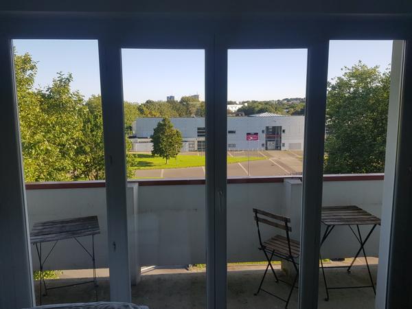 Appartement meublé et équipé, de 77m2, face à la faculté de droit, gestion, économie, AES de l'UBO (vue sur la Fac) rue de Kergoat à BREST, et à proximité du restaurant universitaire CROUS. Au 4eme et dernier étage, lumineux, sans vis à vis. Proche transports en commun : - nouvelle ligne B du tram ralliant l'hôpital de la cavale blanche, le centre ville et la gare SNCF : station quasi au pied de la résidence. - arrêt Kermenguy à 50m (lignes 1, 4, 5, 12, 13, 30, SB29, 39, 42) Stationnement aisé à proximité.