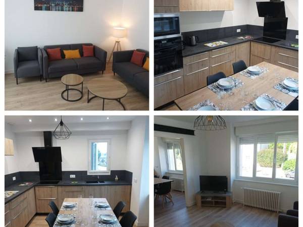 Vous partagerez en commun : Salon/Séjour ouvert sur une cuisine aménagée avec Frigo, plaques de cuisson induction, four, micro-ondes, lave-vaisselle, ustensiles de cuisine, bouilloire, cafetière. - Salon : TV connectée, internet compris. Équipements de qualité. - Buanderie (1 machine à laver, 1 sèche-linge, 1 congélateur, 1 aspirateur, table et fer à repasser, matériels d'entretien). - 2 salles d’eau, 2 WC. – Jardin avec mobilier de jardin, terrasse et local à vélo.