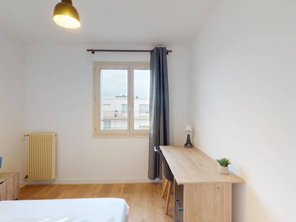 APPARTEMENT 5 PIÈCES AVEC BALCON OQORO vous présente cette colocation de 4 chambres de 92 m² située 18 Rue Frédéric Mistral à Rennes. Cet appartement de 5 pièces se compose comme suit : un salon avec un canapé, TV et meuble TV, table basse, et une table à manger, 4 chambres, une cuisine et une salle de bain. La cuisine est équipée avec un four, un lave-vaisselle, un micro-ondes, plaque de cuisson avec hotte ainsi qu'un frigo et de nombreux rangements et ustensiles de cuisine. La salle d'eau comporte une douche, meuble vasque et miroir. Le chauffage est collectif. Cet appartement est raccordé à la fibre optique. Il est situé au 3e étage d'un immeuble.