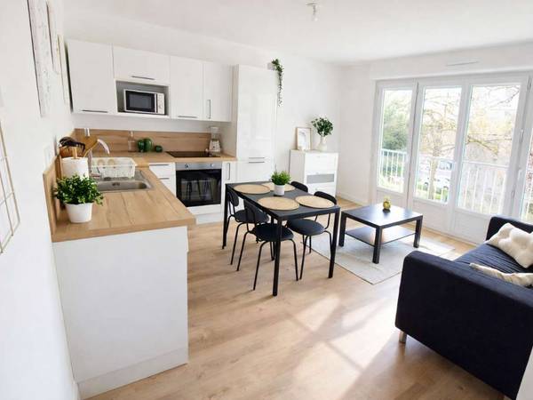 🌟 Espaces communs confortables & fonctionnels : Séjour lumineux avec TV grand écran, wifi haut débit et balcon ☀️ Cuisine équipée : lave-vaisselle, lave-linge, cuisinière, micro-ondes, réfrigérateur, vaisselle 🍳 🛁 1 salle de bain + WC séparé