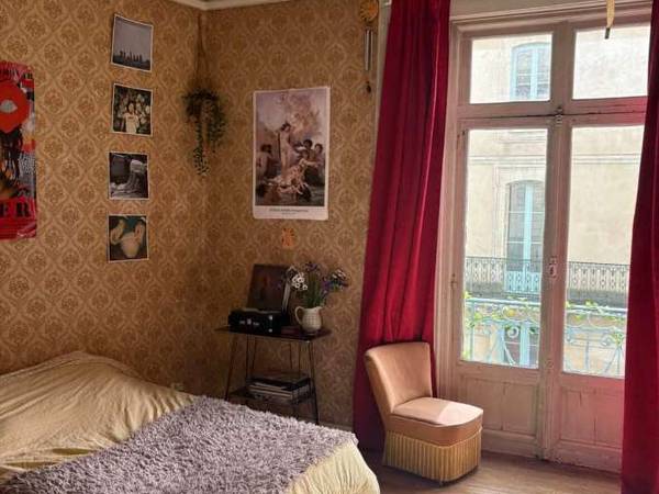 Le loyer est de 370 euros sans les charges. L'appartement est spacieux, lumineux, et bien que place Sainte Anne, pas si bruyant. La coloc est composée de 5 pièces :