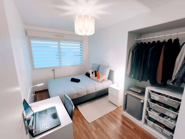 🛏️ Ta chambre : • 11 m² entièrement meublée • Lit 140x200, bureau, dressing • Linge de lit et serviettes fournis