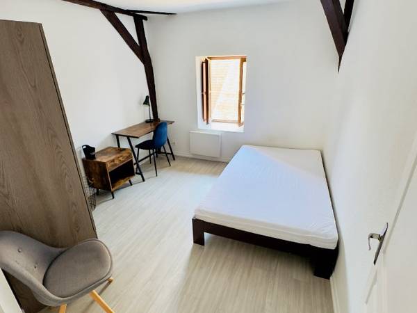 Situé à 9min à pied du CAMPUS de la CCI, 5 min de la gare de bus, possédant des parkings adjacents. Ce Grand appartement de 87m2 totalement repensé pour une collocation de 4 personnes et avec son mobilier afin que vous puissiez simplement poser vos valises et profiter de la douceur de vivre. L’accès se fait par une cour verdoyante, sécurisée via un portail. Situé au 2nd et dernier étage, seul sur le palier, cet appartement de 87m2 est composé de 4 chambres belles et spacieuses (éligibles aux APL), 2 salles de bains avec 2 WC, une grande cuisine totalement équipée et pensée pour être une pièce de vie et un salon détente situé en étage mezzanine pour le confort de tous, comme suivent: