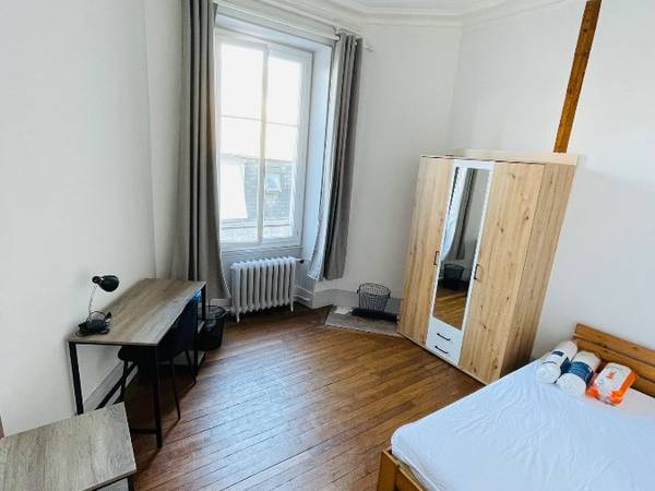 Deux chambres meublées en COLOCATION dans un grand appartement. En place Planchât (Centre-Ville), vous serez proche de tout ! À côté de tout à pieds, pour sortir se ravitailler et se divertir, le terminal de bus desservant tout Bourges vous permettra d’atteindre votre destination sans difficulté. Ce Grand appartement Bourgeois de 197m2 de style Haussmannien avec sa belle hauteur sous plafond, son parquet ancien, son balcon filant agrémenté en 4 terrasses individuelles et ses baies vitrées lui confère une luminosité particulièrement agréable. Totalement repensé pour une colocation et avec son mobilier flambant neuf afin que vous puissiez simplement poser vos valises et profiter de la douceur de vivre. L’accès se fait par une porte en fer forgée, sécurisée et avec la possibilité de ranger des vélos. Comprenant l’intégralité du 2nd étage, cet appartement de 197m2 est composé de chambres belles et spacieuses (éligibles aux APL), 4 salles de bains, 4 WC, une grande cuisine totalement équipée et pensée pour être une pièce de vie, un salons-salle à manger détente et un coin bibliothèque pour le confort de tous, comme suivent : Doté de belles chambres de charme, lumineuses et spacieuses pourvues de leur mobilier de qualité, cette colocation facilitera l’intégration dans une nouveau cadre de vie.