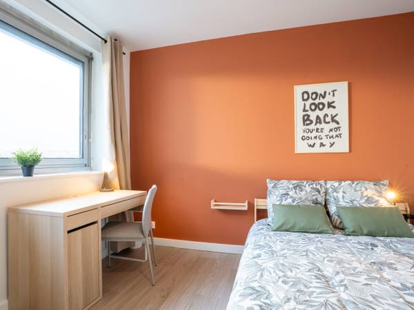 🛏️ Chambres meublées • Lit double 140x190 • Armoire dressing de grande capacité • Bureau de travail fonctionnel • Box 5G • Fermeture sécurisée avec clé individuelle La résidence dispose d’un accès sécurisé par badge et interphone. Dans une résidence sécurisée avec ascenseur et gardien au 13ᵉ étage, découvrez une colocation haut de gamme de 5 chambres, entièrement rénovée et meublée en 2026.