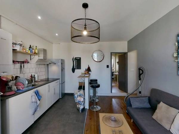 🏠 LES ESPACES COMMUNS La pièce de vie est aménagée avec un canapé et une table basse, offrant un espace de détente agréable. Internet est inclus dans le logement. La cuisine ouverte est équipée d’un micro-ondes, de plaques de cuisson, d’une hotte, d’un évier, d’un réfrigérateur avec compartiment congélateur, ainsi que de nombreux rangements et ustensiles de cuisine. Une machine à café est également mise à disposition. On trouve aussi un mange-debout avec des tabourets, pratique pour vos repas et vos moments conviviaux. La salle d’eau comprend une douche, un meuble vasque avec miroir, un lave-linge et des rangements pratiques. Les WC sont séparés pour un meilleur confort au quotidien. Un local à vélo est également associé à ce logement.