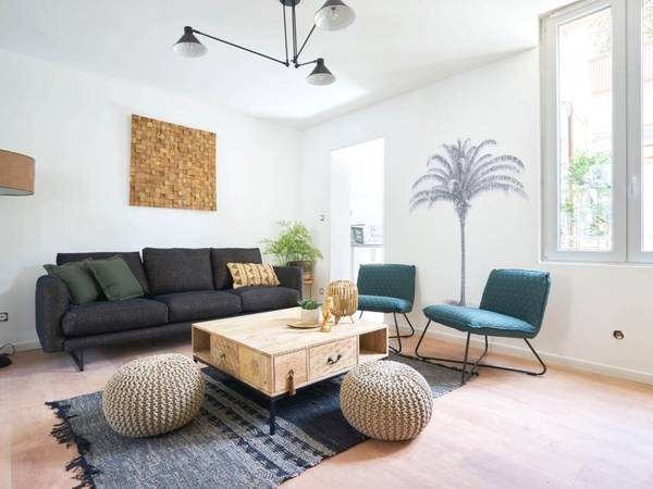- Une pièce à vivre avec une décoration cosy avec TV écran plat.