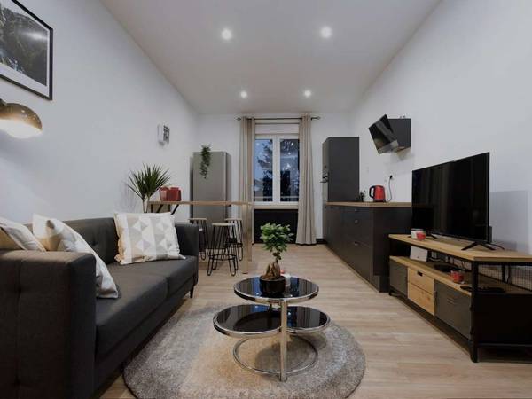 📍 34 rue de Molsheim, vers la gare, à proximité d’un Carrefour City. Le tram Laiterie (B) est au pied de l’immeuble et vous mène en 5 min au centre-ville. Accès facile aux autoroutes.