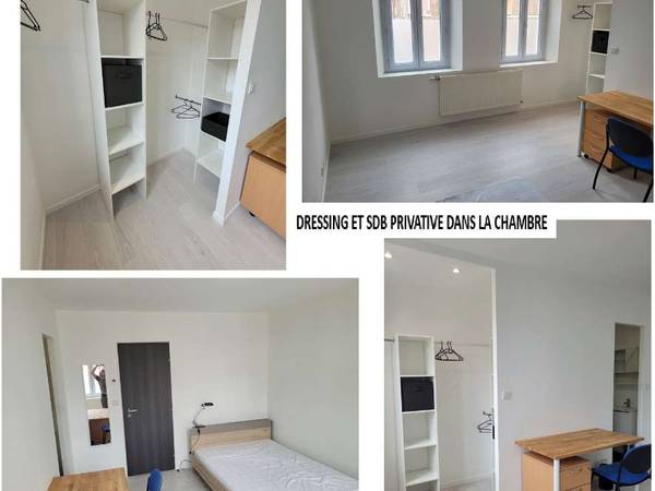 libre au 03/05/2026 : Une chambre de 17,4 m² à 410 € + 60 € de charges (électricité, chauffage, eau, internet fibre avec wi-fi 6, entretien annuel de la chaudière et taxes ordures ménagères)) -lit 140 x 190