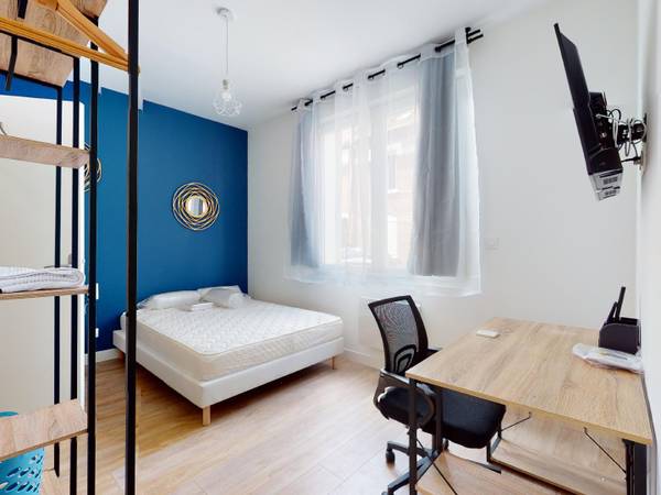 🏠 LES ESPACES COMMUNS La maison a été entièrement rénovée, et comporte trois niveaux. Elle dispose de cinq chambres, chacune disposant d’une salle de bain privative, pour pouvoir profiter des avantages de la colocation tout en conservant son indépendance, ainsi qu’un ensemble de parties communes (Cuisine, salon, cour extérieure) Les parties communes se trouvent au rez-de-chaussée et comprennent une cuisine très bien équipée (Four, micro-ondes, plaques de cuisson, hotte, table à manger, machines à laver, rangements, etc.) et s’ouvre sur un lumineux salon. Celui-ci se munit d’un grand canapé, d’une table basse, d’un tapis, d’un fauteuil, d’un lampadaire, d’un meuble TV et d’une très grande TV murale. Vous accéderez par le salon à une cour extérieure et d’une alcôve agencée avec un salon d’été. Les chambres sont similaires et disposent d’un lit double, d’une table de chevet accompagnée d’une lampe, d’un meuble dressing, d’une TV murale, d’un bureau accompagné d’une chaise et enfin, d’une salle de bain privative munie d’une douche, d’un WC, et d’un meuble vasque.