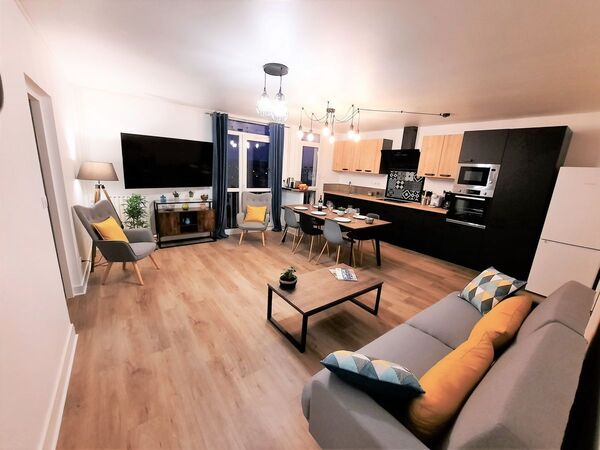 - Appartement tout confort, moderne et au calme - Très grande pièce à vivre avec cuisine ouverte sur le salon pour partager des moments conviviaux. - IMMENSE TV 4K connectée avec NETFLIX - Toutes les chambres sont équipées d’une TELEVISION - INTERNET FIBRE (WIFI et prises Ethernet RJ45 dans chaque chambre et dans la pièce de vie) - 2 salles de bain avec grande douche à l’italienne - 2 WC (1 séparé et 1 dans une salle de bain) - Entrée spacieuse avec porte manteau, dressing et plusieurs placards - Cave avec parking à vélos. - 🚗 Plusieurs stationnement gratuit se trouvent au pied de la résidence.