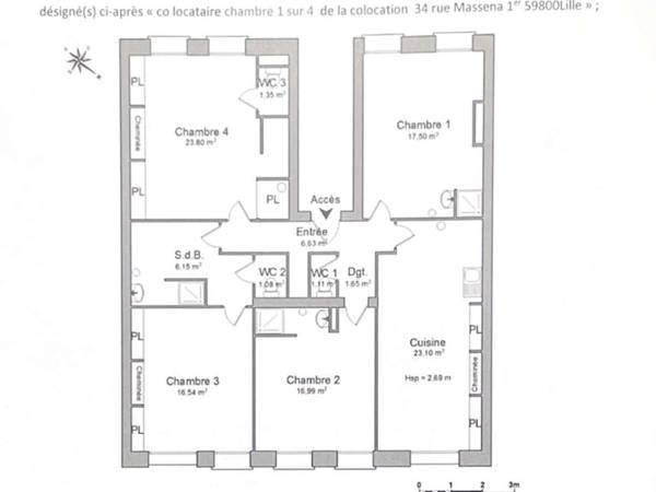 Rue Massena , centre ville , dispo de suite, DPE :C GES: A. 1 chambre immédiatement bail étudiant 6 a 8 mois. Chambre numéro 1 sur plan . spacieuse avec douche et lavabo privatifs, Placard et dressing individuel. Chambre très lumineuse comfortable donnant sur cour et toits dans un quartier très animé et vivant de la place des halles. Proche commerces et transports en commun. ( Gare 15mn à pieds , Catho a 5 mn à pieds. Metro république à 5 mn.)